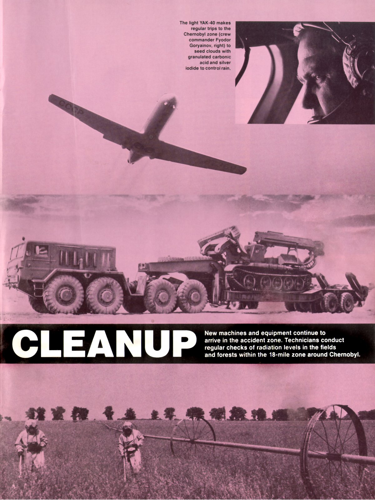 30 kwietnia 1986. Okładki brytyjskich dzienników. Z braku jakikolwiek informacji ze strony ZSRR o rozmiarach i skali awarii, media jedynie podsycają atmosferę strachu i paniki w społeczeństwie brytyjskim. Tytuły na pierwszych stronach informują: The Sun: „Ofiary nie są grzebane na cmentarzach a w dołach radiacyjnych”; Today: „Atomowy koszmar”; „Rosjanie uciekają przed chmurą śmierci”; Daily Mail: „Doniesienia ze strefy zagrożenia mówią o szpitalach przepełnionych ofiarami promieniowania”; „2000 zabitych w atomowym horrorze”; Daily Express: „Tu jest atomowy koszmar”; „Więcej niż 2000 zabitych”, „Tysiące skazanych na zagładę”; „Pomóżcie nam! Apel do zachodu”; „Rosja przyznaje się do najgorszej katastrofy elektrowni jądrowej”. (fot. Wil Mara "The Chernobyl Disaster: Legacy and Impact on the Future of Nuclear Energy", wyd. Benchmark Books, 2010)